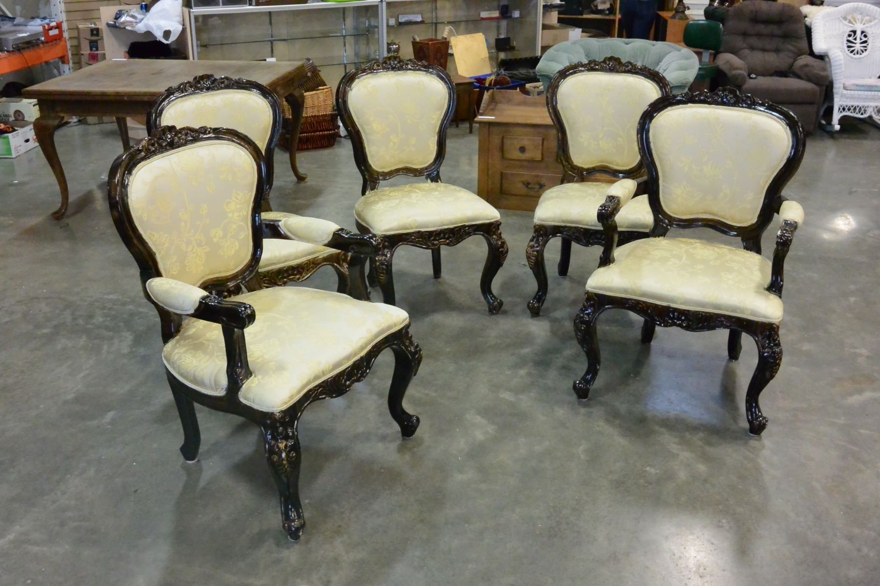 5 CARVED UPHOLSTERED DINING CHAIRS, BLACK AND BEIGE - Big ... from dygtyjqp7pi0m.cloudfront.net Maybe you would like to learn more about one of these? Check spelling or type a new query. Black and cream upholstered dining chairs. We did not find results for: